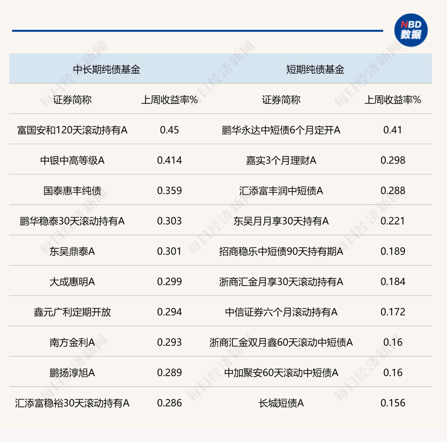 说明:上周各类型债券基金头部业绩情况来源:Wind统计