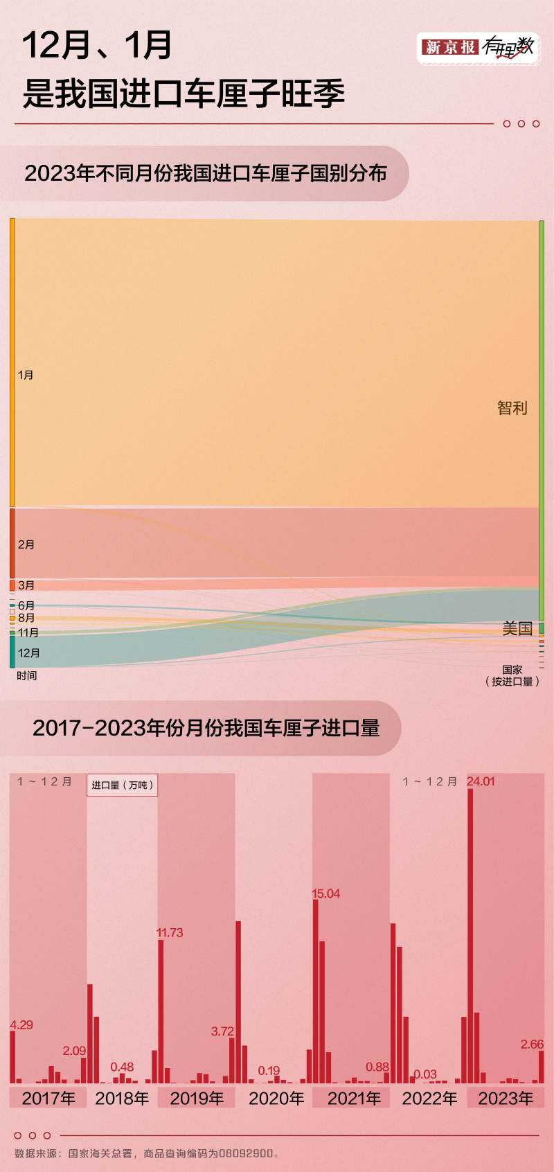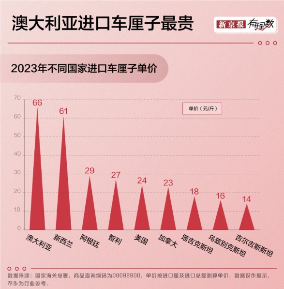 进口量增加了,加上运输成本降低,所以2024年1月车厘子的价格与去年11月相比才会出现“拦腰斩价”的可能。但从各国进口车厘子的价格看,智利的车厘子虽然是数量最多的,但却不是最贵的。